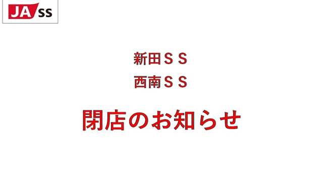 ガソリンスタンド新田・西南 閉店のお知らせ